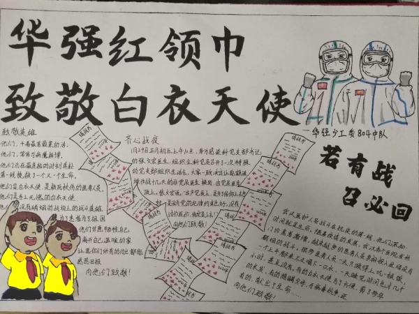 而在新冠肺炎病毒侵襲的這段日子里,華強隊員們從電視上、從廣播里、從身邊的親人那里,感受到了白衣天使們的大無畏之愛……在成長的路上,隊員們接受了太多的關愛,華強少工委的隊員們選擇用自己的方式表達對媽媽、對長輩、對老師、對白衣天使們表達真心的感恩之情,