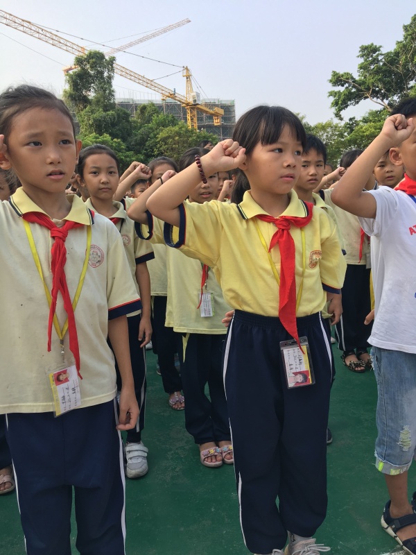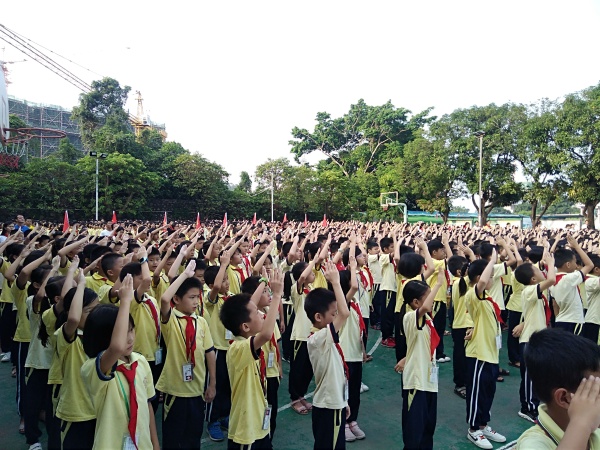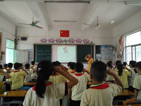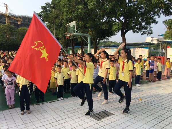 在少先隊建隊70周年的紀念日來臨之際,華強學校的操場和教室里笑聲陣陣,歌聲飛揚,少先隊員們身著統一的服裝,佩戴著鮮艷的紅領巾,舉行“紅領巾心向黨,爭做新時代好隊員”系列活動,活動內容有出隊旗、敬隊禮、唱隊歌、重溫入隊誓詞、呼號、隊員表彰、主題隊會和主題為“習爺爺的教導記心中”的國旗下講話等。