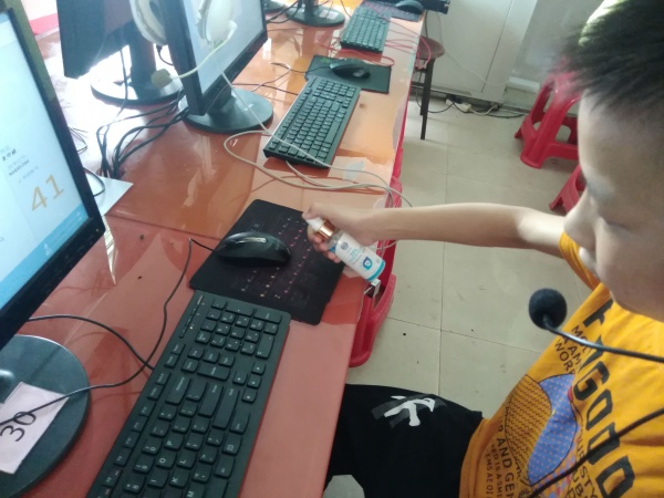 考前兩周,后勤處對電腦房進行了集中消毒。同時為電腦房配置了消毒酒精,每使用一次電腦,就用噴霧酒精對鍵盤、鼠標、耳麥進行一次消毒。為了防止聚集,按電腦機位容量的50%安排學生數,隔位就座。在開空調的同時,又打開電腦房兩邊的窗戶通風。最大限度的防止學生交叉和聚集。