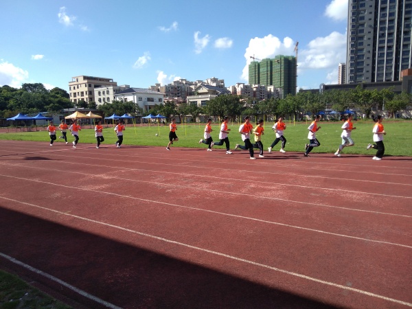 下午進行的是長跑測試,艷陽當空,考場上熱浪滾滾,考試在15:30分開始,炎熱的天氣影響了同學們的發揮,有一位同學出現了中暑頭暈的癥狀,及時讓現場醫生查看,并妥善辦理補考手續。其他同學運動狀態不錯,考后初步統計,滿分的同學占到75%以上。
