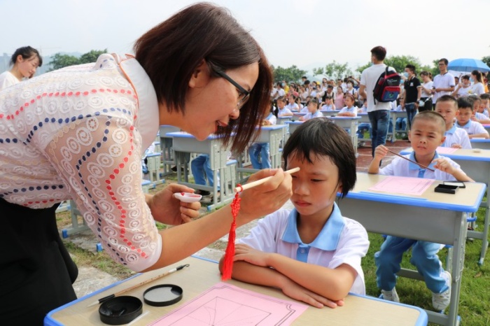 2020年9月4日星期五,神舟學校一年級全體新生及家長在學校運動場上舉行了一場有意義的傳統文化教育活動——新生入學“開筆禮活動”。