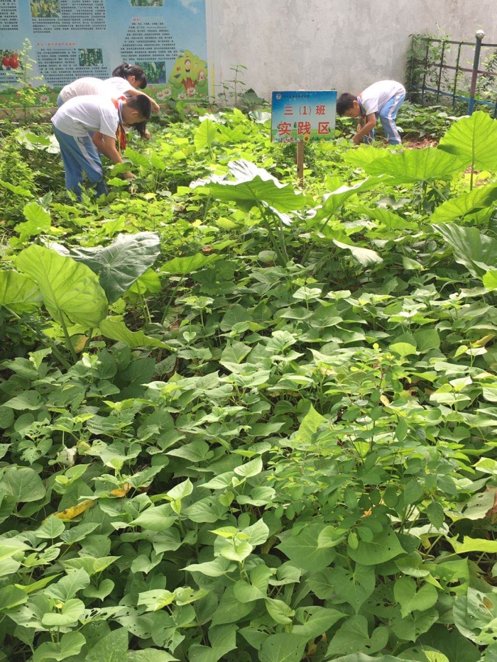 10月20日下午,神舟學校小學部的部分學生,利用實踐課堂,在老師的帶領下,被分成小組有序地進入菜地。你瞧,這邊一組在翻土、播種,忙得不亦樂乎,汗珠不停地冒出來,泥土濺到衣服上,沾到鞋子上,也阻擋不了孩子們勞動的熱情。那邊一組在菜地拔草,長得旺盛的紅薯葉看起來好誘人,猜一猜泥土里有沒有長紅薯呢?一個小孩用手撥弄了一下,卻發現了一只小蝸牛,小蝸牛懶洋洋地躺在葉子上,細細的觸角探出來,又害怕似的縮進去。小朋友們興奮地圍在一起觀察,又可以寫一篇日記了!還有一組在進行除草比賽,他們仔細地分辨著蔬菜和雜草,農場里的車前草、三葉草、馬齒莧,讓學生認識到不同的植物,老師不停地向孩子們講述著課本上沒有的知識。不一會兒,菜地的雜草被拔干凈了,孩子們卻還意猶未盡。