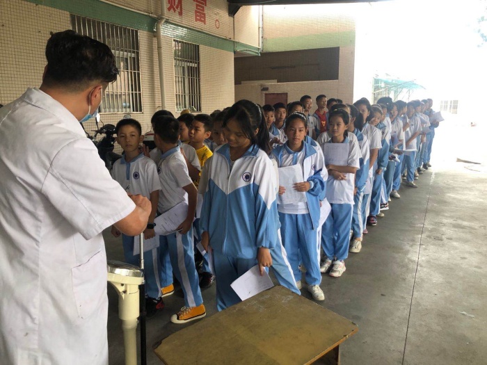 為及時了解和準確掌握學生的健康狀況和生長發育情況,保障學生的健康安全,根據中山市教育和體育局的統一要求,10月12到19日,神灣醫院10幾名醫務人員來到神灣神舟學校對56個班級2700多名學生進行了體檢健康檢查。本次體檢主要有以下項目:測量身高、體重、視力、內科、外科、口腔科、眼科、五官科。