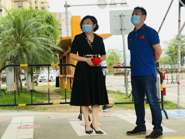 特殊的開學典禮后,神灣鎮人大主席李明生在譚瑞香校長的陪同下,參觀走訪了學校校醫室,查看防護物資的準備情況,詢問檢查了學校應急通道的完成情況,肯定了全校教職工為學生順利返校付出的努力。另一邊,神灣鎮衛計局陳愛文同志親自抵達學生校車乘坐點的北門,在邱繼發副校長等人的陪同下,查看校車消毒清潔記錄表、詢問學生上下車體溫檢查的落實情況等,強調防疫防控期間也要常抓校車安全。為充分保障飯堂管理與飲食安全,在李健主任的帶引陪同下,神灣鎮食監所韓華彰所長一一查看了飯堂工作人員的健康證明材料,檢查了倉庫內糧米、雞蛋等生活物資的儲存情況,強調學校后勤部一定要確保食材的新鮮與安全,做到后勤力量有保障、學生飲食重安全。