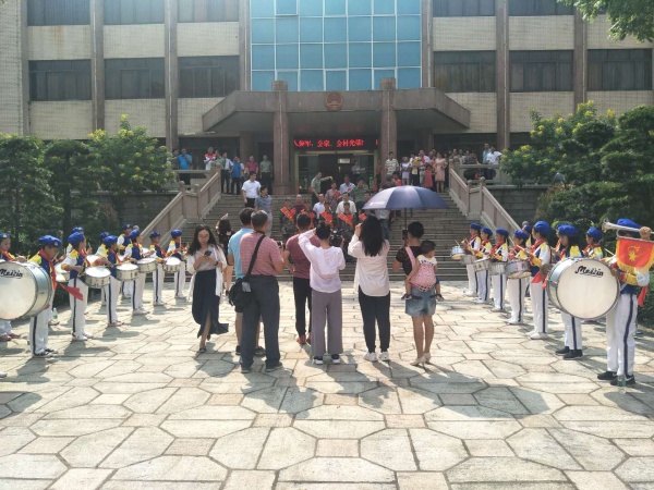 2019年9月12日下午,艷陽高照,彩旗飄飄,神灣鎮政府人頭攢動,一片喜慶氣氛——這里舉行神灣鎮2019年新兵入伍歡送儀式。神灣中心小學鼓號隊的隊員們應邀參加了送兵儀式,為入伍的新兵奏響入伍的光榮之歌。