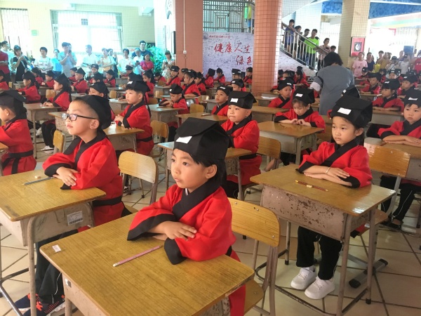 下午,全體一年級新生接受了以“傳禮承德,開筆啟智”為主題的入學“開筆禮”,孩子們在莊嚴的儀式中感受中華民族勤學苦練、尊師孝親、仁愛處世等文化精髓。