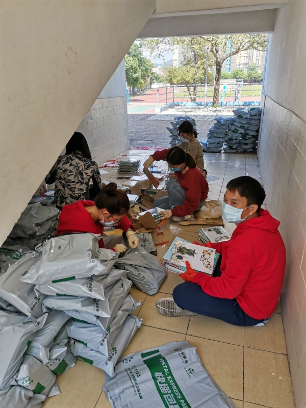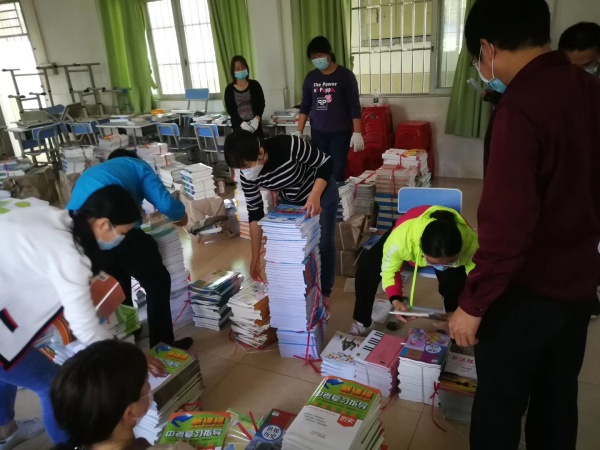 2月27下午4點30分,市教體局召開了關(guān)于3月2日開展線上教育的視頻會議,并發(fā)放了相關(guān)文件。會后,教務(wù)處立即制定了“神灣中學(xué)學(xué)生教材發(fā)放方案”“致家長的一封信”,告知家長發(fā)放教材的方法,讓家長選擇教材的發(fā)放方式。晚上又召開了全體行政、級組長、科組長、班主任視頻會議,安排教材發(fā)放工作。2月28日早上8點,在級組長鄒佩睦、溫婉寧、陳志松的帶領(lǐng)下,三個年級的部分老師積極參加分發(fā)教材的工作,他們中午不休息,連續(xù)奮戰(zhàn),僅用一天的時間就把教材按家長的要求分發(fā)到學(xué)生的手中,為3月2日線上教學(xué)順利開展奠定了基礎(chǔ),學(xué)校為這些老師們的無私奉獻而欽佩,也感謝神灣郵政快遞公司的鼎力相助。