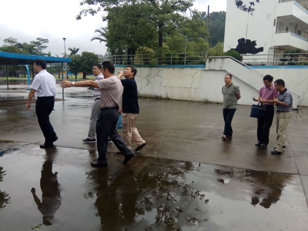 愉悅的暑假即將結(jié)束,新的學期就要來臨。為了使各學校能平穩(wěn)、順利、有序地跨入新的學期,2018年8月30日,中山市教育和體育局以局領(lǐng)導為組長,分七個組到市直屬及各鎮(zhèn)區(qū)學校開展2018年秋季開學專項督導檢查工作。以市教體局副局長黎國喜為組長的督導組冒著大雨蒞臨神灣中學開展專項督導檢查工作,神灣鎮(zhèn)黨委委員張寧浦、教育事務(wù)指導中心主任朱寶明及神灣中學校長林干能全程陪同。