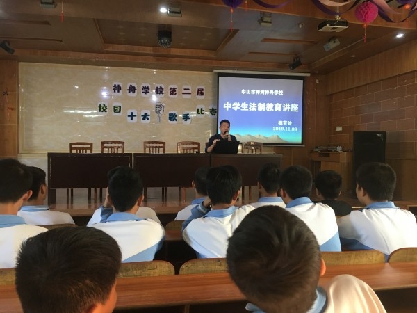 為切實(shí)增強(qiáng)學(xué)生們的法制意識(shí),切實(shí)做好預(yù)防青少年違法犯罪工作,2019年11月14日星期四,中山市神灣神舟學(xué)校德育處,組織了中學(xué)八、九年級(jí)的學(xué)生,舉辦一場(chǎng)安全、法制教育講座,本次講座由神舟學(xué)校德育主任韋德敏主講。