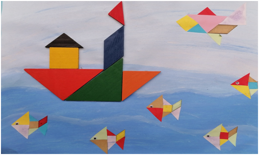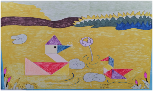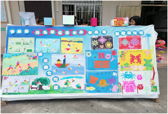 一年級孩子積極動腦,充分發揮自己的想象力和創造力,用七巧板拼出各式各樣的圖案來。有的拼成了一只可愛的小貓,有的拼成了一艘遠航的帆船,有的拼出了狐貍和烏鴉的故事,有的拼出了守株待兔的故事。簡單的七巧板在孩子們手中拼出了豐富多樣的圖案。二年級孩子制作的是軸對稱圖形。孩子們充分發揮想象力,用不同顏色的卡紙巧妙搭配,剪一剪,拼一拼,涂一涂,一件件精美的作品就此產生。有豐收的秋天,有海底世界,有幸福的溫馨之家。三年級孩子制作的時鐘具有較高的欣賞和實用價值。時鐘造型獨特、千奇百怪,制作精美。你瞧——有的把鐘表設計成動物的形狀,有的在時鐘上繪制各種精美圖案,真讓人贊嘆不已!