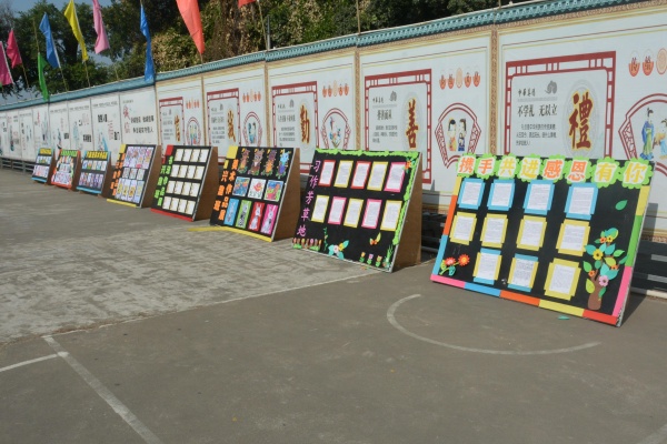 五色的彩帶、飄舞的彩旗將中山市神灣育才學校打扮得溫馨、祥和、熱烈、喜慶。中午12點多鐘,進校的家長在禮儀學生的引領下走進活動地點,在進來的兩邊,一邊是八塊展板展出了學生的美術作品、書法作品、優秀作文;另一邊懸掛著學生親手創作的藝術畫,共有作品120多部作品。這些作品充滿了童趣,充滿了想象,藝術的表現了他們的心聲、夢想、追求。下午13:30分,全體師生及800多名學生家長齊聚前操場。?
