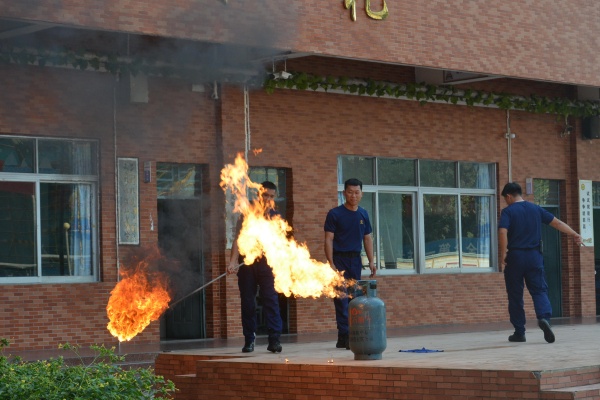 接著消防員對滅火器和撲滅液化氣燃燒火焰的方法進行講解,并現場演示。隨后讓學校師生進行實際操作。首先由德育主任彭江波主任現場演習,接著有幾位教師和學生上臺操作演練。消防官兵現場指導、點評。這一環節為全校師生上了一節滅火器使用的示范課。臺上演習成功,臺下掌聲雷動。