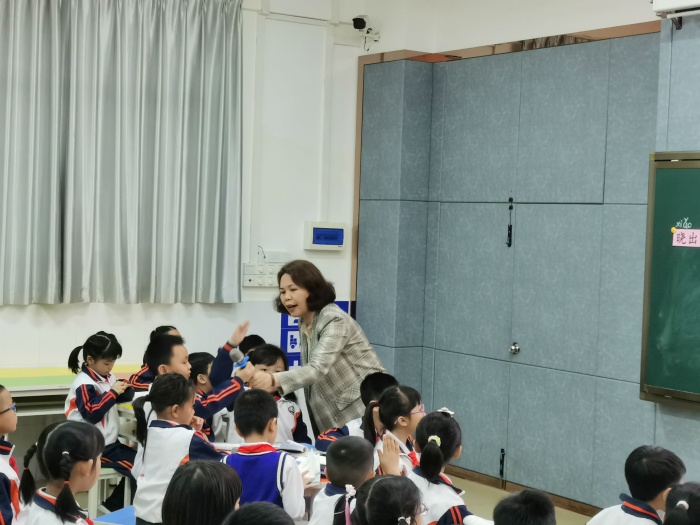 研討活動分三個主題進行:低段語文、數學、道德與法治。活動共6節課,每天一主題。此次活動的“主菜”——反復研磨的六堂課,各具特色、精彩紛呈。韓紅梅主任和李展峰老師的語文課堂靈氣十足,書聲瑯瑯。韓紅梅主任的《花鐘》抓住單元語文要素“借助關鍵句概括一段話的大意”展開教學,在聽、說、讀、演的過程中夯實語言的積累和運用,提升學生的思維能力。李老師的古詩《曉出凈慈寺送林子方》,課堂古意盎然,充滿詩情畫意。黃曉毅老師和梁秋霞副校長的數學課堂條理清晰,凸顯邏輯和思維的魅力。黃老師的《簡單的推理》,充分體現了“學生是學習的主人”這一教學理念,調動了學生學習數學的興趣。梁秋霞副校長的《找規律》課堂清新靈動,引導學生在自主探究中掌握找規律的方法和意義,彰顯著獨特的魅力,“乒乓娃”們全情投入到課堂學習中。黃玉媛老師和馬偉萍副主任帶來的道德和法治課堂體現了生活性、開放性和活動性,這正是道法課的精髓所在。黃老師的《小水滴的訴說》,通過創設生動有趣的教學情境,引導學生在日常生活中養成珍惜每一滴水的好習慣。馬偉萍副主任的《大自然 謝謝您》,通過各種活動的創設,培養學生善于傾聽的學習習慣,鼓勵“乒乓娃”們自覺愛護自然,一年四季與自然和諧相處。