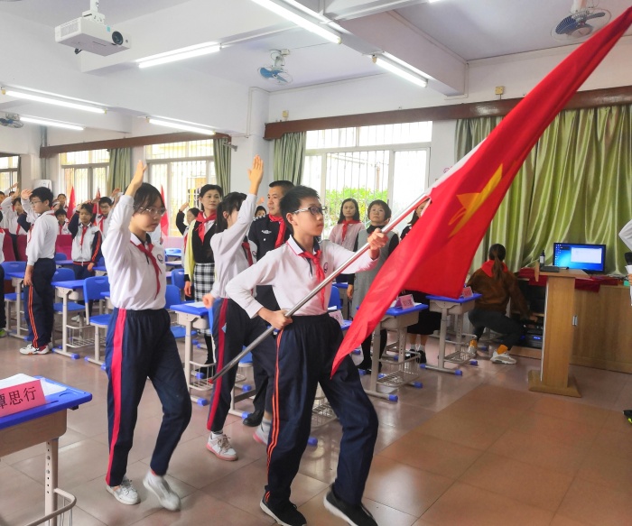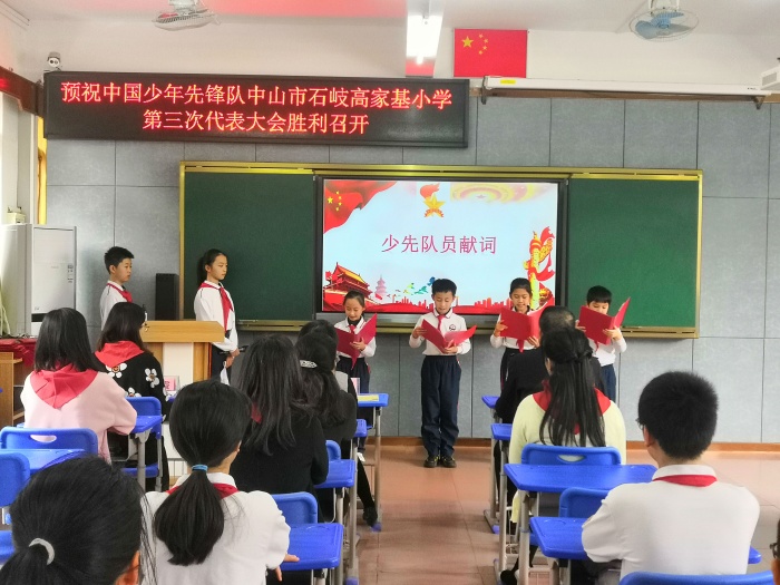為落實少先隊改革任務,推進學校少先隊工作的發展,充分發揮少先隊代表大會的組織優勢,增強思想道德教育的針對性、實效性,1月6日下午,石岐高家基小學舉行第三屆代表大會暨少工委換屆活動。該活動在高家基校區電教室舉行。少工委委員候選人、各中隊隊員代表、全體大隊委、中隊輔導員代表、全體行政領導參加了活動。
