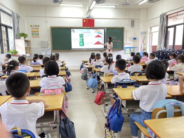 8點30分整,伴隨著國歌聲響起,教師莊嚴的目光,全體學生標準的少先隊禮,莊嚴嘹亮的國歌聲響徹在高家基小學上空,目光都凝望著徐徐升起的國旗。高昂的聲音,飽含對祖國的熱愛,內心的激動溢于言表,祝福祖國母親繁榮富強。隨后,高家基小學大隊輔導員張志婷老師帶領全體少先隊員面向黨旗、團旗、隊旗敬禮、唱隊歌、重溫入隊誓詞、莊嚴呼號,全體少先隊員表達了自己對祖國、對黨的誠摯祝福以及為實現強國夢,努力學習、奮發向上的決心。