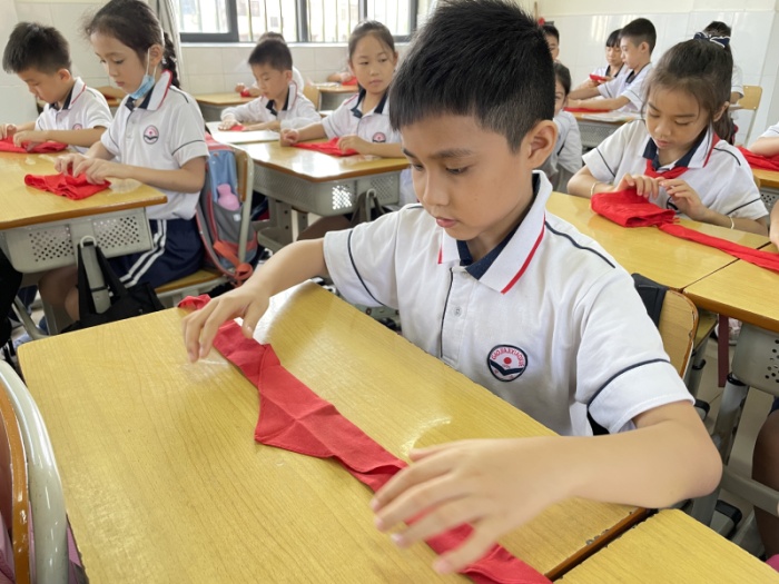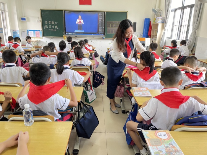 為認真開展好少先隊微儀式,高家基小學各級少先隊輔導員在微儀式之前,以主題隊會、主題隊課等豐富多彩的形式,在各班開展了少先隊標志禮儀規范授課,引導高家基小學的少先隊員們認識隊旗、隊徽,學習佩戴紅領巾,練習敬隊禮、呼號,熟悉隊歌,誓詞。
