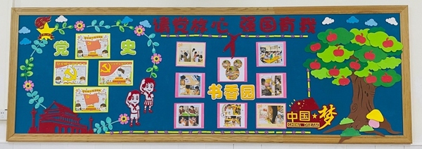 正所謂“少年強則中國強”,為了激起學生的愛國熱情,各班通過板報布置,以潤物細無聲的形式進行愛國主義教育。本次板報的主題為“請黨放心,強國有我”,各班學生在正副班主任的指導與帶領下,為班級布置了形式多樣、色彩鮮明、教育內容童氣滿滿的黑板報,展示了“黨史”“法治”“閱讀”等主題內容,有的班級還結合班級特色展示班級活動風采。板報區域雖小,卻布置規整,教育內容豐富。