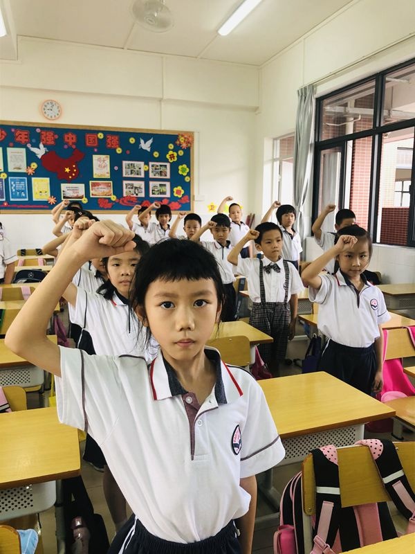 各中隊輔導員制作了精美的課件,為同學們詳細介紹了隊名、隊旗、隊徽、隊標志、隊禮、隊歌、呼號等有關少先隊的知識,理解了“先鋒”一詞的含義,還就中國少年先鋒隊光榮的歷程等知識作了解讀。同學們認真地學習敬隊禮,學習呼號,學習戴紅領巾,跟著老師讀誓詞,稚嫩的聲音里透著堅定,緊握的拳頭顯示著信心;唱隊歌,唱一唱《少年先鋒隊隊歌》——“我們是共產主義接班人,繼承革命先輩的光榮傳統,愛祖國,愛人民,鮮艷的紅領巾飄揚在前胸……”為了加入自己夢寐以求的少先隊,孩子們個個都精神飽滿,在老師的指導下群情激昂,高唱著隊歌。一張張純真的小臉流露著孩子們對隊組織的向往和崇敬,清脆的童聲表達著孩子們即將成為少先隊員的自豪和喜悅,也流露著他們加入少先隊組織的堅定決心;敬隊禮,需要充分發揮家庭的作用,學校與家庭密切配合,要求每個同學在入隊前做一件好事。內容豐富的隊前教育,使一年級新生初步了解了少先隊,讓他們擁有少先隊生涯的美好開端,也培養了他們的組織意識,增強了作為一名少先隊員的強烈歸屬感和自豪感!