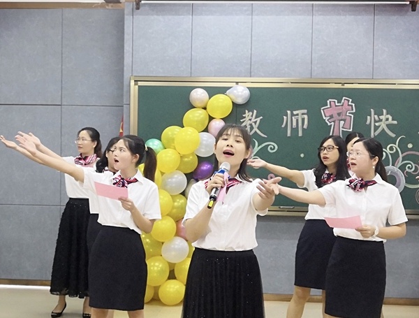 活動開始,由黃榮勝校長當場致辭。黃榮勝校長談到:“教師的職業是崇高的、神圣的,但也面臨著嚴峻的挑戰。作為一名教師,責任感是師德的核心,同時我們也要努力成為新時代的‘四有’教師?!本o接著,全體教師以年級組為單位為大家送上了精彩絕倫,趣味橫生,形式多樣的節目和游戲。他們利用工作之余的時間抓緊排練,在短短的時間內呈現了一個生動有愛的舞臺。表演的過程充滿了歡聲笑語,掌聲此起彼伏,教師們演得開心,心里也美滋滋的。最后,大家共同評選出最喜愛的節目,并由黃榮勝校長與蘇鳳群副校長為獲獎的隊伍頒獎。慶?;顒舆M入尾聲,全體教師為教師節獻唱《明天會更好》?! ?/p>