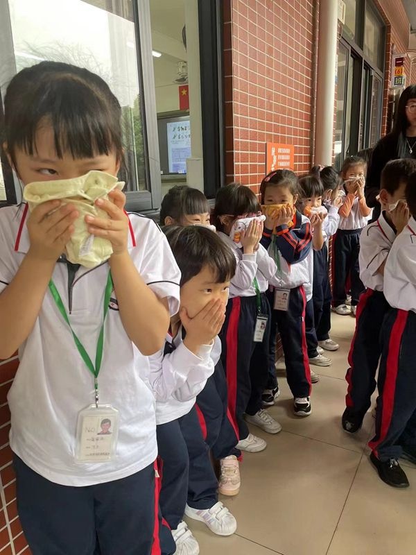 緊急疏散信號響起前5分鐘,各樓層老師按照分工,各就各位。隨著緊急報警響鈴聲在校園內(nèi)急促響起,正在上課的師生反應(yīng)迅速,各班學(xué)生在老師的組織下,按與樓梯就近的原則,往下疏散。同學(xué)們用準備好的濕毛巾折疊后捂住口鼻,彎腰前行。已安全到達安全地帶的班級的班長馬上向?qū)W校統(tǒng)計員報告本班應(yīng)到人數(shù)、請假人數(shù)和安全撤離人數(shù)。此次演練做到了快速、安全、有序。