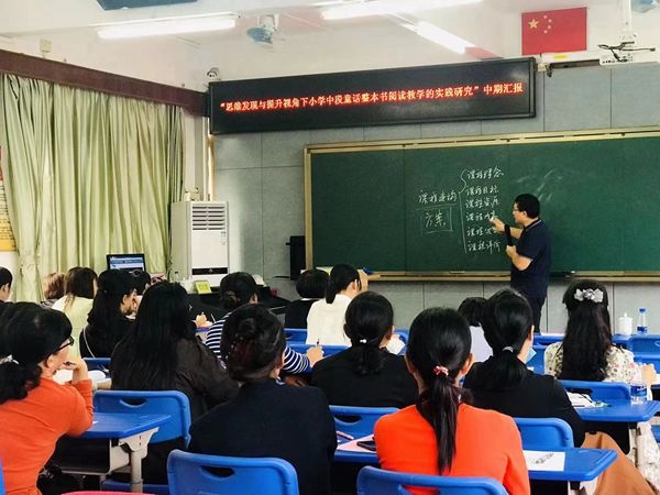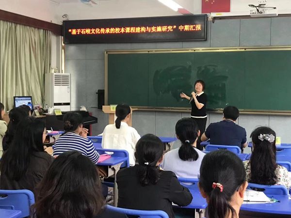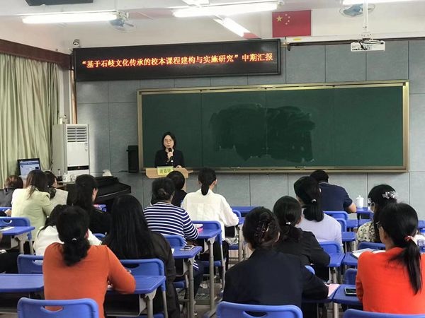 接著是兩個課題的主持人分別進行中期研究匯報。鄭結霞校長主持“基于石岐文化傳承的校本課程建構與實施研究”這個課題。她從課題研究概述、前期研究基礎、中期研究狀況和后期研究思路四個方面進行了詳盡匯報,既展示了課題研究的研究成果,更展示了她的管理情懷。田雅老師主持“思維發(fā)展與提升視角下小學中段童話整本書閱讀教學的實踐研究”課題,她人從課題研究背景、研究思路、階段性研究成果、研究效果、問題展望五個方面匯報了課題進展,提出了課題研究的困惑。
