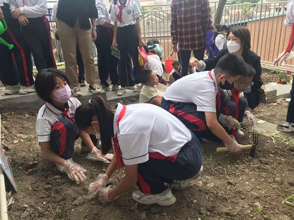 隨后鄭結霞校長為勞動基地頒發了班牌,譚思行副校長為各班頒發了勞動工具,梁秋霞副校長分別向各班分發種子。各班同學在老師和家長們的帶領下來到自己班級的責任種植區,大家開始擼起袖子加油干,填土、翻土、除草、播種……勞動基地一片熱火朝天。