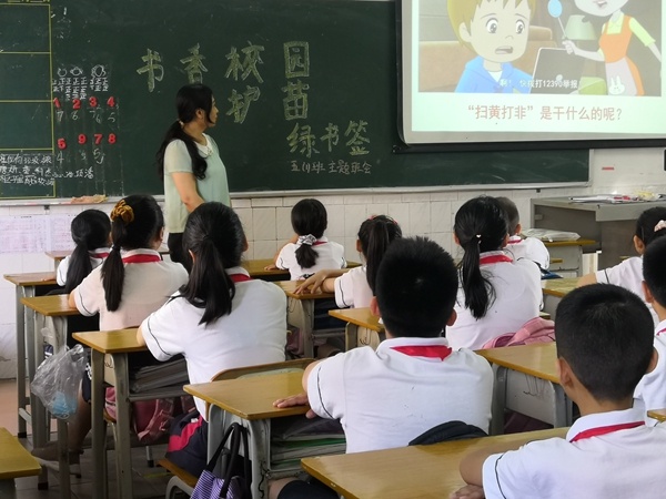 此次“掃黃打非”活動的開展分為幾個部分進行:一、召開以“書香校園·護苗·綠書簽”為題的主題班會活動。班會課上,班主任帶領學生通過觀看視頻、參與師生交流互動、共同參與“我承諾”等活動了解學習“掃黃打非”的重要內容。此外,班主任再次強調“掃黃打非”的重要性,為學生提高安全意識,爭做文明守紀的新時代好少年提供了豐富的思想源泉。二、開展“掃黃打非”故事會活動。學生通過課前查閱相關資料,課上分享身邊故事的形式交流身邊所見所聞。故事會上,“小故事家”講得津津有味,抑揚頓挫,“小觀眾”聽得認真、出神,講完后同學們還會圍坐交流感想,暢談“掃黃打非”的必要性與重要性。三、共學“掃黃打非”常識。學校根據學生的年齡特點,在校園宣傳欄處刊登通俗易懂的常識,學生們紛紛圍上前去閱讀、學習,并進行分享交流。