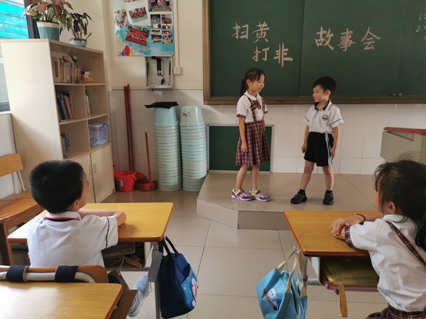 此次“掃黃打非”活動的開展分為幾個部分進行:一、召開以“書香校園·護苗·綠書簽”為題的主題班會活動。班會課上,班主任帶領學生通過觀看視頻、參與師生交流互動、共同參與“我承諾”等活動了解學習“掃黃打非”的重要內容。此外,班主任再次強調“掃黃打非”的重要性,為學生提高安全意識,爭做文明守紀的新時代好少年提供了豐富的思想源泉。二、開展“掃黃打非”故事會活動。學生通過課前查閱相關資料,課上分享身邊故事的形式交流身邊所見所聞。故事會上,“小故事家”講得津津有味,抑揚頓挫,“小觀眾”聽得認真、出神,講完后同學們還會圍坐交流感想,暢談“掃黃打非”的必要性與重要性。三、共學“掃黃打非”常識。學校根據學生的年齡特點,在校園宣傳欄處刊登通俗易懂的常識,學生們紛紛圍上前去閱讀、學習,并進行分享交流。