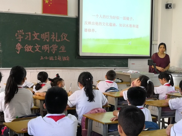 首先,學校以國旗下講話的形式向全校老師和同學發起了“同做文明人,共創文明城”的倡議。四(2)班曹可欣作為學生代表,激情洋溢地闡述了創建文明城市和文明校園的重要性和必要性,講述了小學生如何從日常的衣著、言談舉止、儀態表情等方面學習做一個文明有禮、自信大方的小學生。其次,學校在各班級開展“學習文明禮儀,爭做文明學生”的主題班會活動,從多個方面向學生展示文明禮儀的具體表現,號召學生從自身做起,從細節做起。比如,與人和睦,和同學相互有禮有節;與人和諧,見到老師主動問好,“謝謝”“對不起”“請”等文明語言常放嘴邊;與人友善,面帶微笑,做文明言行的自覺實踐者。最后,學校以班級為單位評選了“星級好少年”,“愛國”“文明”“誠信”“友善”四枚印章是其組成部分。評選上的同學在全班同學的注目和掌聲中走向講臺、戴上印章,帶著一份內在的自信和滿足,帶著一份同伴的信任和肯定。他們將是班級和學校行走的文明之風、盛開的文明之花,在校園里散播著文明的馨香之氣。