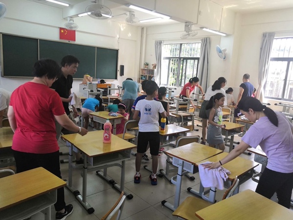 7月26日,石岐高家基小學時刻響應中山市創建文明城市的號召,以家校共攜手的形式,開展了一系列創文攻堅活動——教室大掃除、文明大走訪等。