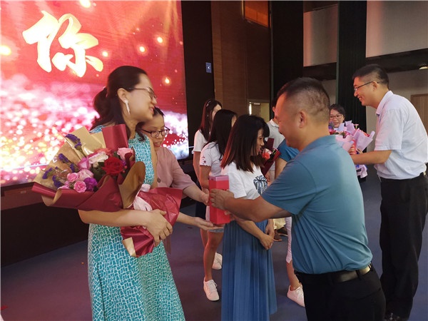 第二環節是歡送下一年度交流輪崗教師,教師代表首先為交流輪崗教師獻花、合影留念,然后由學校劉剛毅副校長發言,劉校長對即將交流輪崗教師的工作給予了充分肯定,對他們為學校教育教學工作做出的貢獻表示感謝,同時希望老師們能以高度的責任感和使命感,認真對待交流輪崗工作,為開發區教育的發展,繼續貢獻自己的力量。