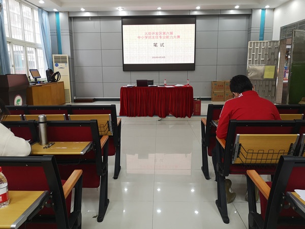4月23日下午,全區參賽教師通過釘釘直播的形式,同一時間獲取“成長故事敘述”的主題——以“我的反思”為主題,用故事形式敘述身為班主任與學生之間共同成長的思與變,參賽教師在規定時間內撰寫文稿并錄制視頻。4月24日,參賽教師齊聚在開發區中心小學電教室,隔開距離一人坐一排,有序而又緊張地進行了筆試環節。