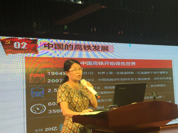 周瑞珍結合中華人民共和國成立70周年之際,回顧發展歷程,緊緊圍繞中國的橋梁建設、高鐵發展、新的“四大發明”和航天技術發展等方面,用史實資料,通過大數據和案例,詳盡展示了國家取得的一系列輝煌成績。生動地講述了以網購、移動支付、共享單車,成為外國人眼中最想帶回的“特產”,進一步托舉起中華民族偉大復興的中國夢,讓人們由衷地贊嘆:“厲害了,我的國!”周瑞珍的講話鏗鏘有力,為現場教師,尤其道德與法治教師指明方向,二小學生們聽后,心潮澎湃,心中燃起熊熊烈火,對祖國的愛更加濃烈。