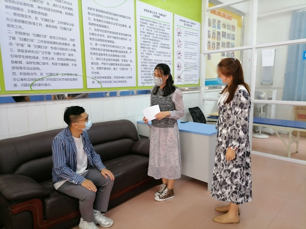 如在上課期間有學生出現身體不適、有發熱和輕微咳嗽癥狀,科任教師為學生測量體溫,陪護該學生到觀察室,途中確保不與其它人員近距離接觸。衛生保健員翻看重點人群臺賬,調取該生基本信息,并用水銀體溫計測量、詢問記錄。班主任致電家長進一步咨詢確認學生近期健康及居家情況,整理學生的信息資料上報給學校責任報告人,學校責任報告人立即報告區教育事務指導中心和學校負責人。妥善安置健康異常人員后,后勤組隨即進行消毒。