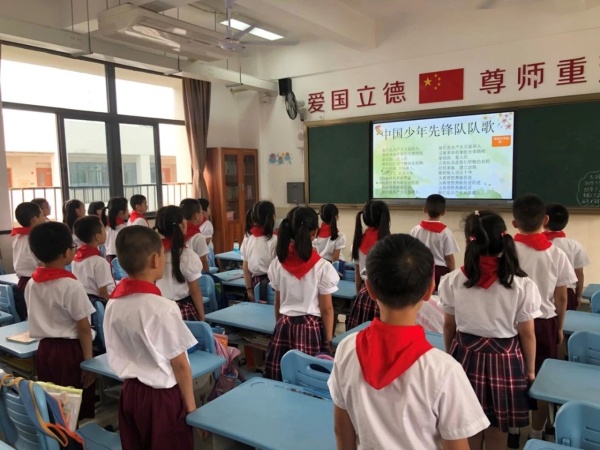 在課堂上,同學們認真地聆聽老師的講解,通過學習少先隊的歷史,激勵同學們從小就要養成良好的行為習慣,一起努力爭做合格的共產主義接班人。接著,學習自己佩戴紅領巾、正確佩戴好隊徽,嘹亮的中國少年先鋒隊隊歌在校園里回蕩。