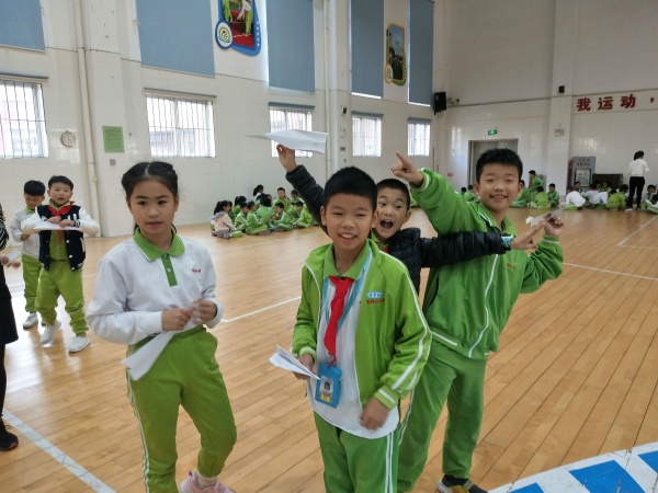 本次紙飛機比賽使用標準A4紙制作模型,紙張能折疊、適當剪裁、膠粘、涂色,但不能懸掛重物或者填裝其他物品。賽前,在老師和家長的指導下,同學們已經研究了紙飛機的飛行原理,進行過無數次的改進和試飛,為的就是讓手中的飛機能飛得更遠更高。早在上周,各班已經在班上開展了紙飛機比賽預賽,并且選出了四名參賽選手,經過一周的探索與改進,各班參賽選手帶著滿滿的自信,踏入了體育館。