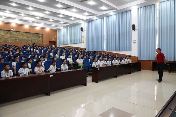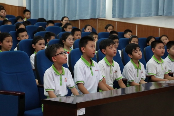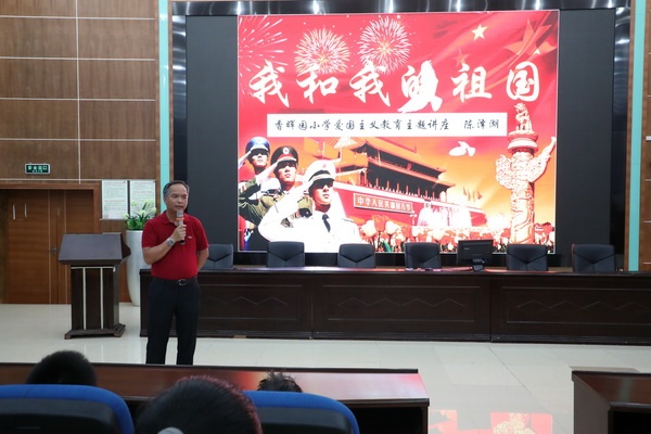 9月12日下午,開發區香暉園小學黨支部書記、校長陳澤湖在學校報告廳為該校五年級全體學生講授題為“我和我的祖國”的本學期第一堂思想政治教育課。