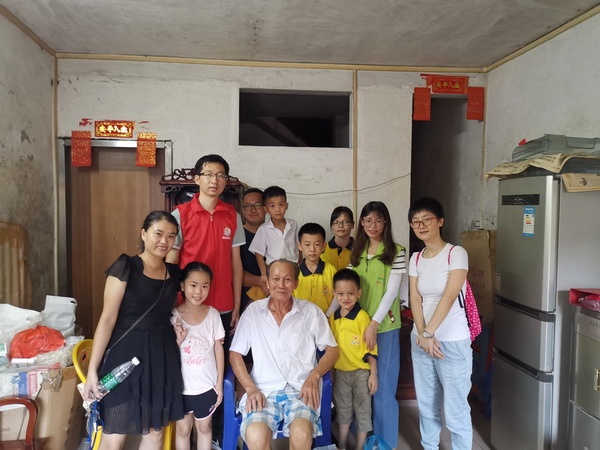 制作好月餅后,校親子義工家庭分成三組,去探望張家邊、海濱、聯(lián)富三個(gè)社區(qū)的十幾戶孤寡老人。在社區(qū)社工的帶領(lǐng)下,香暉園小學(xué)親子義工家庭的老師、家長(zhǎng)和孩子們帶著剛剛做好的月餅和一些生活用品看望了孤寡老人,為老人們送去了節(jié)日的溫暖和祝福。