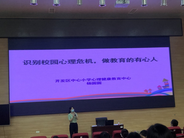 最后,以“識別校園心理危機,做教育的有心人”為主題,將落實心理健康教育作為返校教學(xué)工作的重點。心理教師楊圓圓老師詳細講述了現(xiàn)階段返校應(yīng)注意的學(xué)生心理問題。她表示,教師要善于觀察學(xué)生心理危機警示的信號,并做好自身的情緒管理,加強家校合作,共同維穩(wěn)學(xué)生身心。