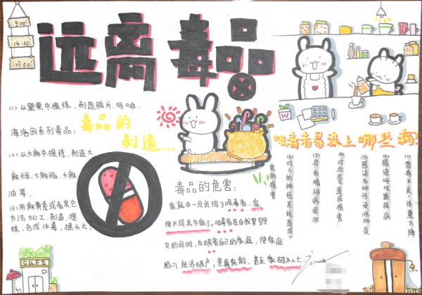 禁毒活動另一個重要方面是手抄報、作文、繪畫作品征集。這次征集活動一共收到禁毒手抄報、繪畫作品150余幅,征文80余篇。經過德育處的幾名評委老師的認真評選,分別評出了手抄報、繪畫和征文作品一等獎15名,二等獎20名,三等獎30名,優秀獎若干名,并為獲獎學生頒發了獎狀。