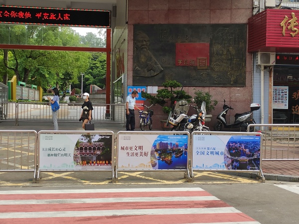 同時,學校加大了創文宣傳氛圍的營造,向全體學生、家長發出了“同做文明人,共創文明城”創文倡議書;利用電子屏滾動播報宣傳標語,同時,在學校周邊張貼、懸掛宣傳標語5條(處)。