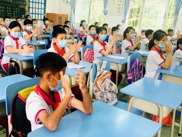 此次主題班會活動在各班老師的有序組織下進行。教室里,孩子們身著禮服,佩戴鮮艷紅領巾,坐姿端正,認真聆聽臺上同學分享他們心中的抗“疫”英雄故事。“我一直在尋找一個英雄的榜樣……” “當疫情暴發時,他又義無反顧地去了武漢……”聽到一個個感人的故事,教室里一次次響起了熱烈的掌聲!英雄們的故事,將像春天的種子,在每個同學的心里都種下了一顆英雄夢,而這些掌聲,代表了孩子們對英雄們崇高的敬仰與欽佩!能在疫情面前挺身而出的人,有科學家、有醫生、有快遞員、有保安等各行各業的人,他們是身邊人,他們是普通人,而他們就是英雄,他們就是我們學習的榜樣!