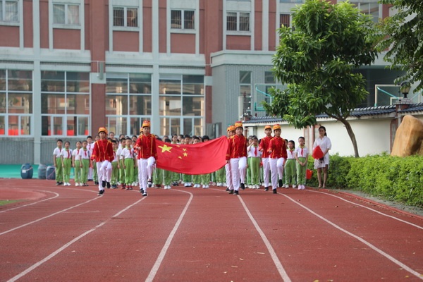 早上7:50分,當朝陽灑滿操場時,香暉園小學的孩子們穿著統(tǒng)一的校服,排著整齊的隊伍,舉著鮮艷的國旗來到操場。