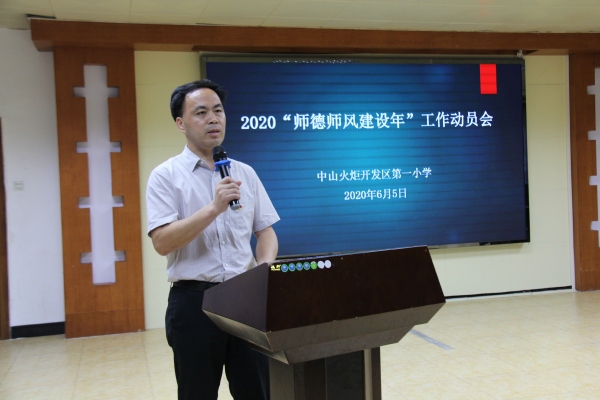 為進一步加強學校教師職業道德建設和教師隊伍管理,規范教師的職業行為,增強廣大教師以身示范、規范從教、樂于奉獻的責任感和使命感,爭做“有理想信念、有道德情操、有扎實學識、有仁愛之心”的“四有”教師,開發區第一小學積極落實上級精神,將2020年作為學校“師德師風建設年”。為確保師德師風建設工作落實到位,2020年6月8日,開發區第一小學在綜合電教室舉行了2020年“師德師風建設年”動員大會,全體教師參與了此次會議。