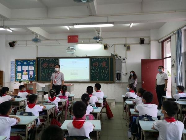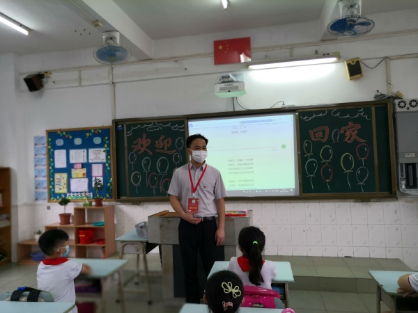 5月18日是中山市中小學(xué)第三批學(xué)生返校的第一天。早上,中山火炬開發(fā)區(qū)第一小學(xué)的同學(xué)們剛剛進(jìn)校不久,一場大雨突如其來,讓原本安排好的升旗儀式只能改為室內(nèi)進(jìn)行。升旗儀式結(jié)束,學(xué)校常務(wù)副校長劉光旗同志打著雨傘帶領(lǐng)全體行政直奔教學(xué)樓,來到每個(gè)復(fù)學(xué)班級探望學(xué)生,跟學(xué)生們面對面交流,向同學(xué)們傳遞學(xué)校的關(guān)心和溫暖,為同學(xué)們疫情下的復(fù)課學(xué)習(xí)鼓勁加油。