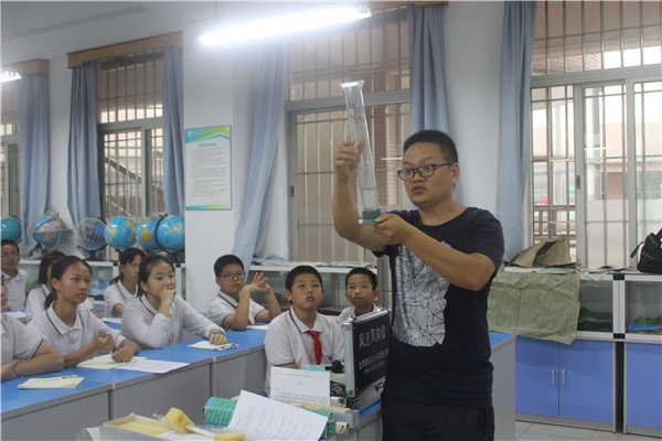 5月的南國,氣溫到達30多度,下午更是暑熱難熬。中山市氣象局吳健君、許暉兩位工作人員頂著烈日,連續(xù)兩周來到開發(fā)區(qū)一中,為該校地理學科氣象觀測小組無償贈送一批新的氣象觀測儀器設備,為同學們無償授課,宣講氣象知識。
