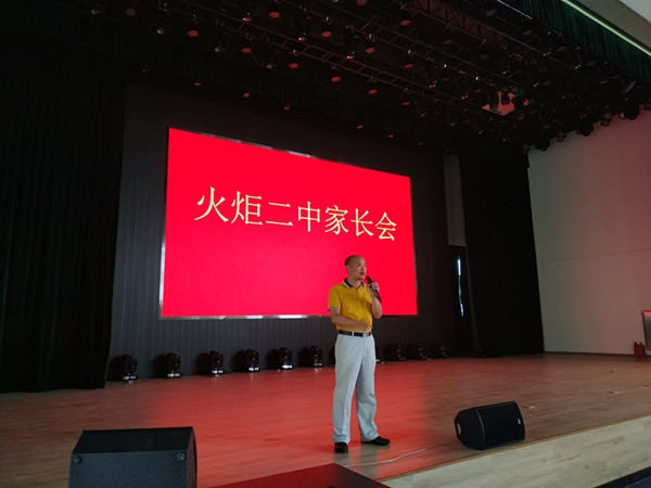 下午4點,火炬二中初一新生第一次全體家長會準時召開,整個報告廳座無虛席,家長們準時參加,整個會場井然有序。火炬二中副校長沙泉源,教務處主任林建出席了會議,年級主任楊泳春主持了此次會議。