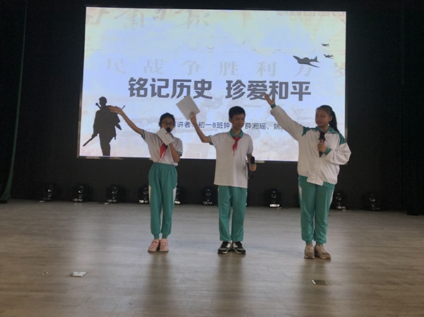 在氣勢軒昂的宣誓后,初一8班三位小演講者開始“勿忘國恥,振興中華”的演講。又是一年“九一八”,時間過去了整整88年,侵華日軍所犯下的罪行無法被時間抹去,中華民族的心靈創傷永不能安撫!華夏兒女必須要清楚牢記:銘記歷史,勿忘國殤。1931年9月18日,日本帝國主義發動了蓄謀已久的侵華戰爭,東北三省淪為日本帝國主義的殖民地,約三千萬中華兒女慘遭涂炭,陷于水深火熱之中。 中華民族經歷過太多挫折才走到今天這一步,而我們——祖國未來的希望與棟梁,是要以自己的努力換取華夏民族在世界上的發言權!“讓中國站起來,立穩足跟。”這是我們努力的源頭與方向,重任擔在我們肩頭,唯有不斷超越自己努力學習,將華夏兒女積極向上,朝氣蓬勃的精神完全散發出來,才能早日實現中華民族偉大復興。