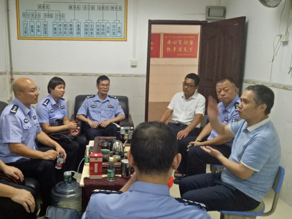 為確保國慶期間維穩安保工作,使廣大師生度過一個平安、歡樂、祥和的節日,9月18日上午,中山市公安局姚慶峰警官一行到火炬區新苗學校檢查指導安保維穩工作。新苗學校校長朱德友及分管德育安全工作的副校長段岳華陪同檢查。