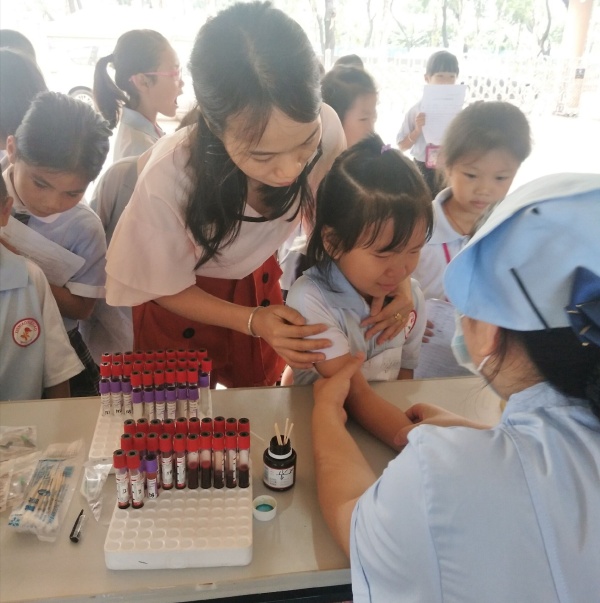 低年級學(xué)生中出現(xiàn)個別怕抽血的孩子,不敢將胳膊伸響醫(yī)務(wù)人員,在班主任老師的溫暖陪伴下,輕聲呵護中,孩子最終戰(zhàn)勝恐懼,勇敢的將胳膊伸給了醫(yī)生;肺活量檢查中,對于學(xué)生操作不當(dāng)?shù)牡胤剑t(yī)務(wù)人員及時指導(dǎo),確保檢查無誤;測身高的區(qū)域,時不時聽到孩子們驚喜地交流,長高啦,長高啦……視力檢測區(qū)域,學(xué)生們按照醫(yī)務(wù)人員要求,準(zhǔn)確無誤的完成檢查,對于視力低下的同學(xué),醫(yī)務(wù)人員進行正確用眼,及平時用眼需注意事項的講解。